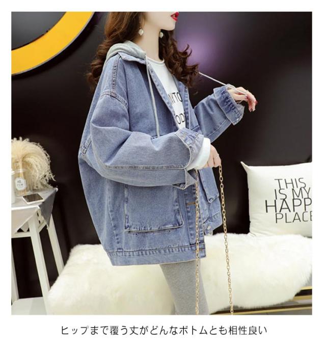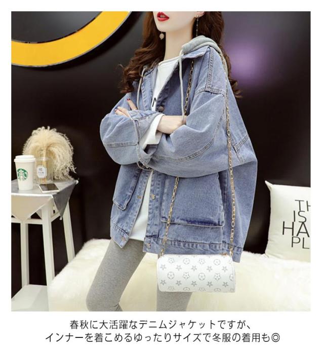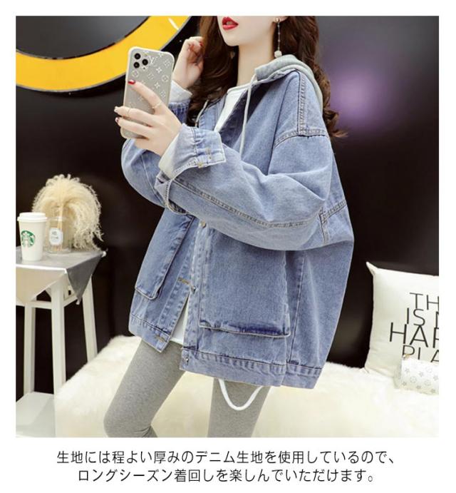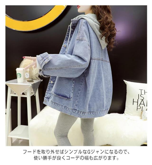 デニム レディース デニムジャケット 取り外し可能 デニムコート フード付き 50代 春 夏 秋 体型カバー 20代 オーバーサイズ 30代 40代 Gジャン ゆったり ジージャン カジュアル ジャケット 大人 デニムジャケット ボリューム袖 フラップポケット 通勤 通学 お出かけ 韓国風
