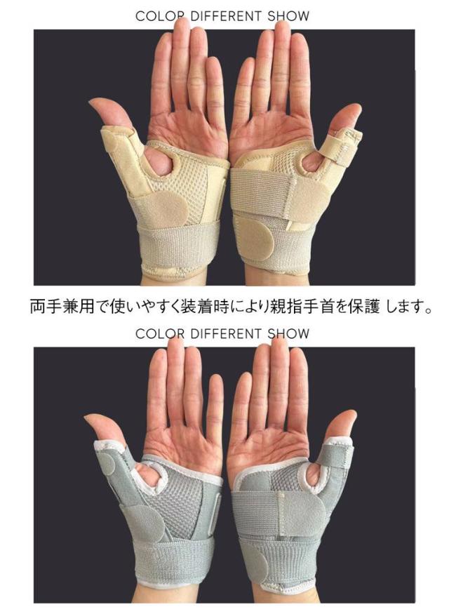 | 【親指サポーター 両手通用 通気性 4色】 【親指をガッチリ圧迫】 親指をガッチリ圧迫出来るのサポーターです。お仕事や家事等の様々な動きに対して装着により負担を軽減する親指の付け根関節サポーターです。 【親指を優しく支える設計】 人体の構造に基づく設計で手にしっかり第一関節 にフィットする形状の手指関節サポーター です 両手兼用で使いやすく装着時により親指手首を保護 します。 | |