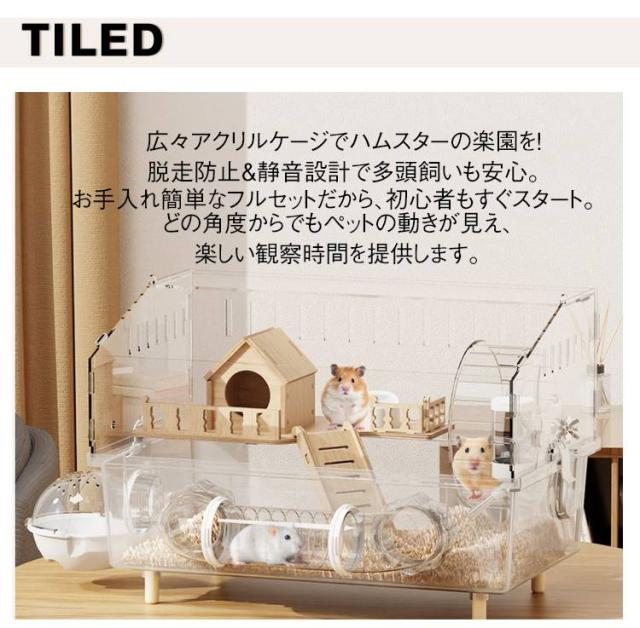 大型 ゴールデンハムスター アクリル製 広い空間 多頭飼い対応 組み立て簡単 ハムスターケージ 45×30×33cm 脱走防止 ゴールデンハムスター 大きい 広々スペース 通気性良好 お手入れ簡単 小動物 ケージ 静音設計 観察しやすい 給水ボトル 回し車 お風呂
