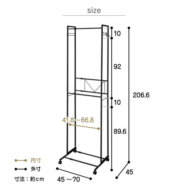 | サイズ | 約 幅45〜70×奥行45×高さ206.6(cm) |