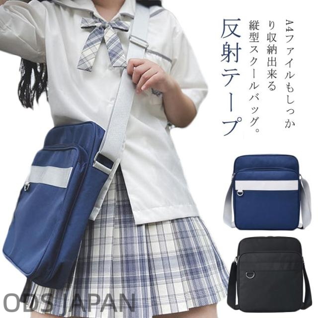 A4 男子 登校 スクールバッグ 軽量 縦型 ブラック 紺 かばん ショルダーバッグ サブバッグ 女子 学生 バッグ 中学生 高校生 通学鞄 黒 入学 通学 ネイビー 斜め掛け ナイロン 撥水 丈夫 大容量 スクバ