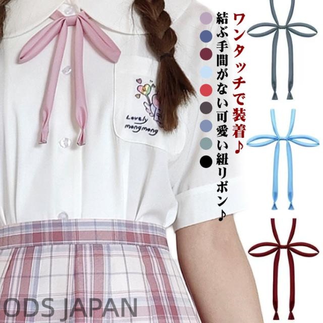 ヒモタイ 紐タイ スクール ひも 卒業式 紐リボン サテン生地 入学式 アジャスター付き 選べる2点セット 中学生 送料無料 制服リボン スクールリボン 制服 ワンタッチ装着 紐リボン 無地 高校生 学生服 通学 小学生 リボン