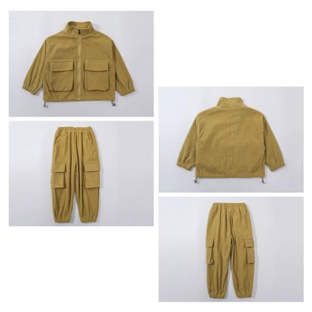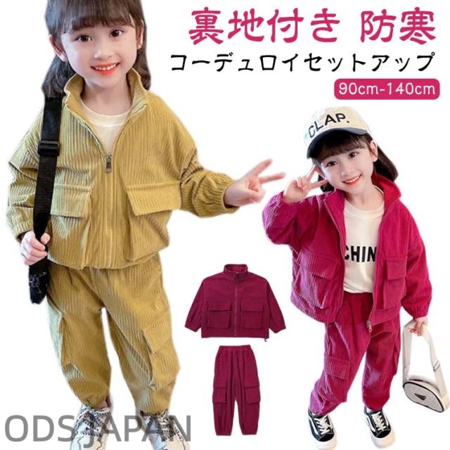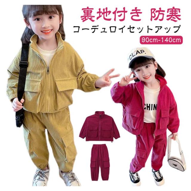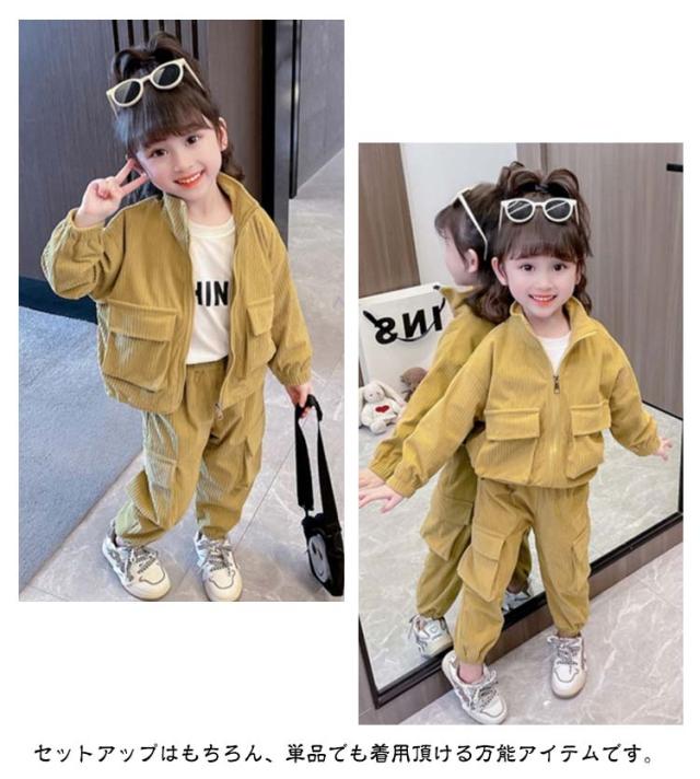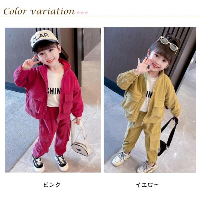 キッズ セットアップ コーデュロイ ジャケット ジップアップパーカー ジョガーパンツ 子ども服 女の子 春 秋冬 コーデュロイ アウター 裏地付き カーゴパンツ コーデュロイパンツ 上下セット かわいい イエロー ピンク 90 100 110 120 130 140 cm 【送無】