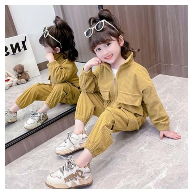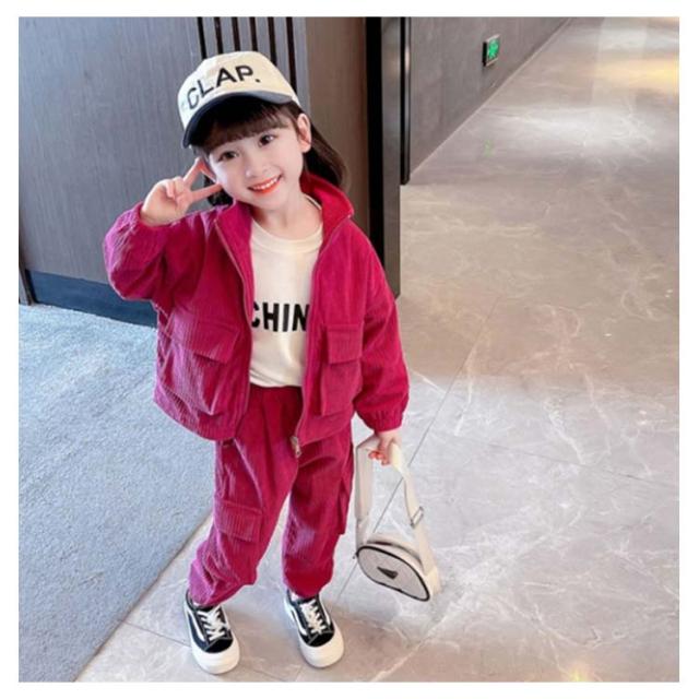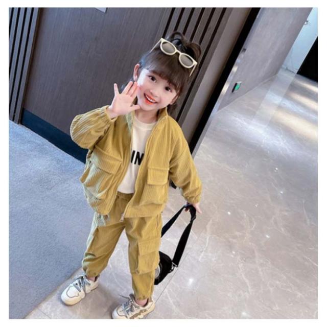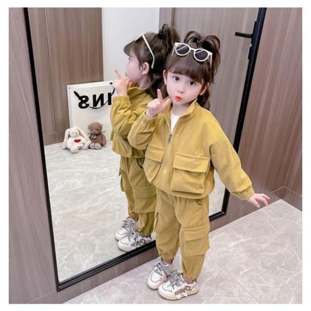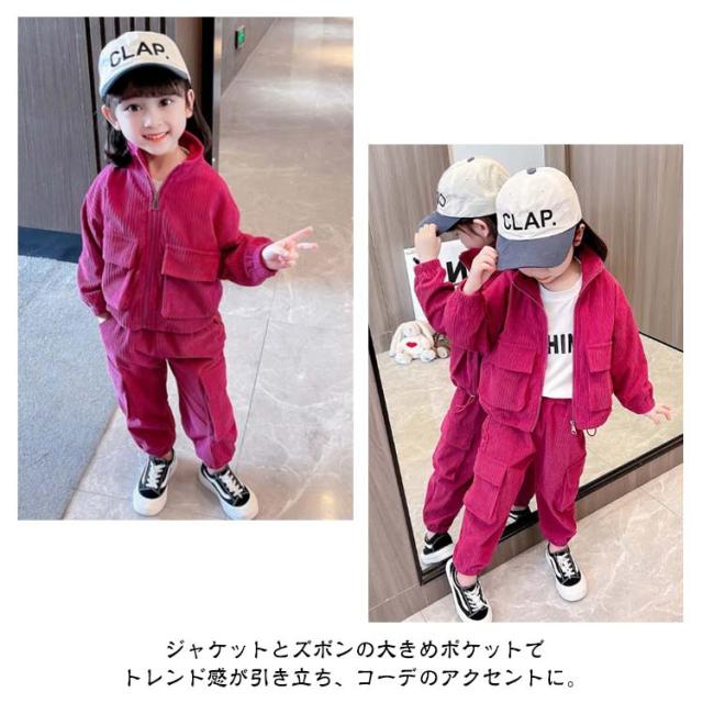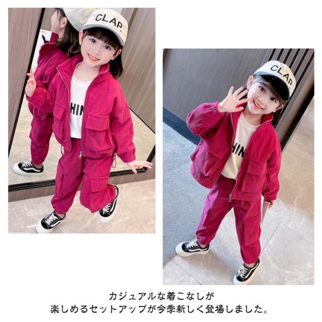 キッズ セットアップ コーデュロイ ジャケット ジップアップパーカー ジョガーパンツ 子ども服 女の子 春 秋冬 コーデュロイ アウター 裏地付き カーゴパンツ コーデュロイパンツ 上下セット かわいい イエロー ピンク 90 100 110 120 130 140 cm