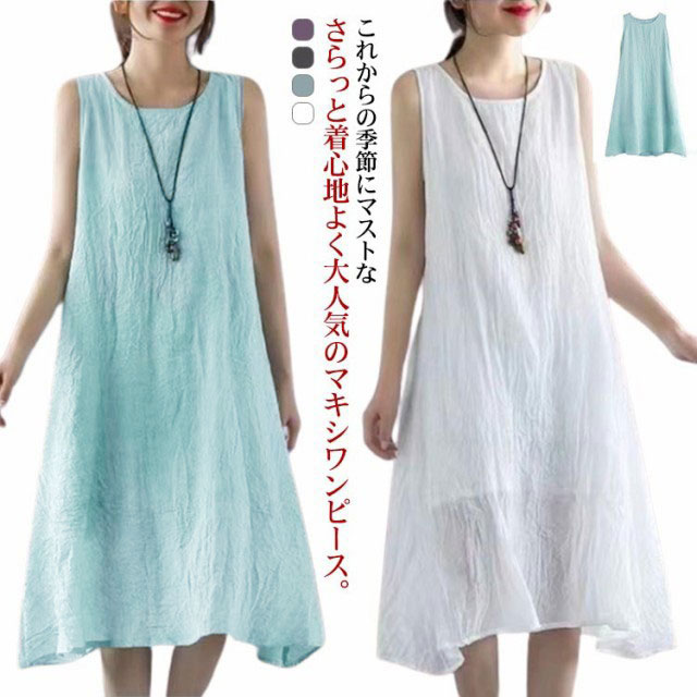 ワンピース Aラインワンピース レディース ノースリーブワンピース ワンピース キャミワンピース タンクワンピース ロングワンピース カジュアル クルーネック 夏ワンピース 夏ワンピ 膝丈 Aライン ナチュラル ゆったり セクシー シンプル 無地 大人 女性 マキシワンピース