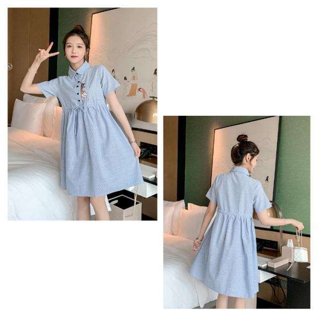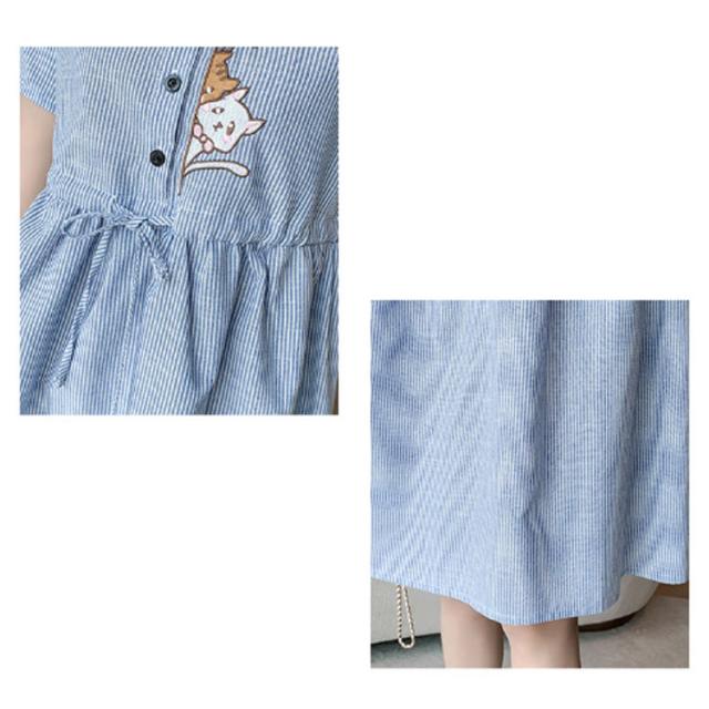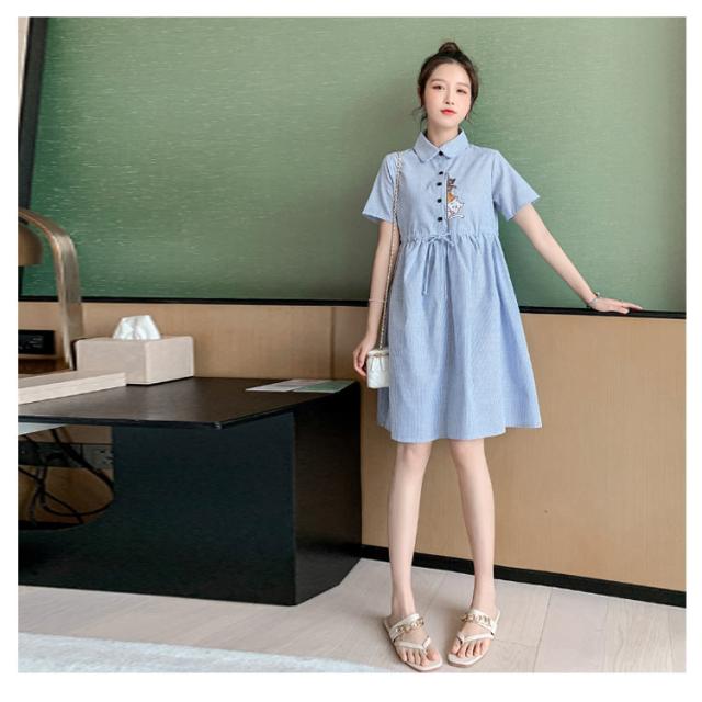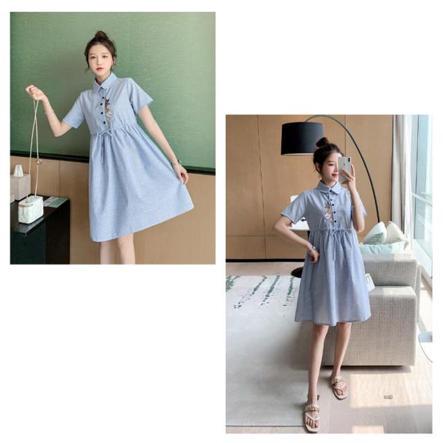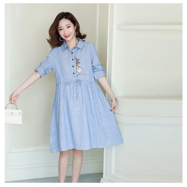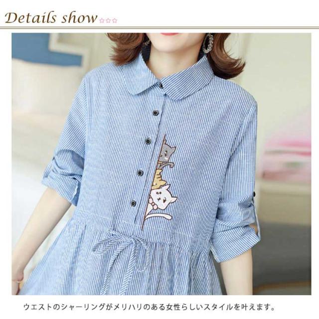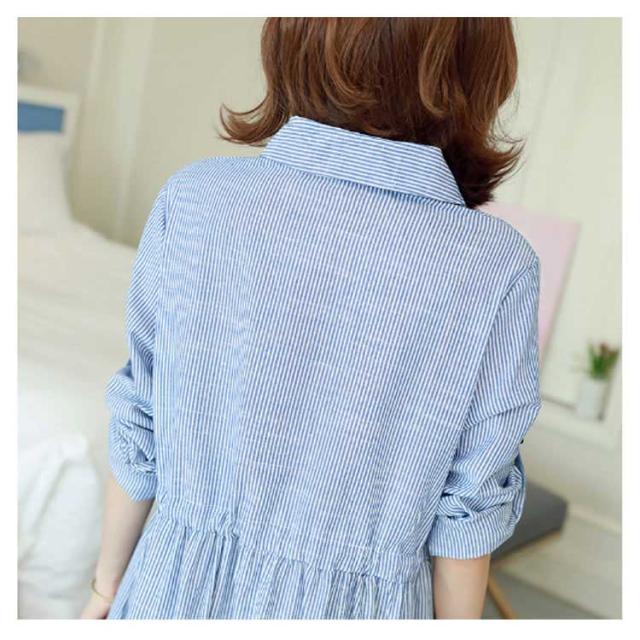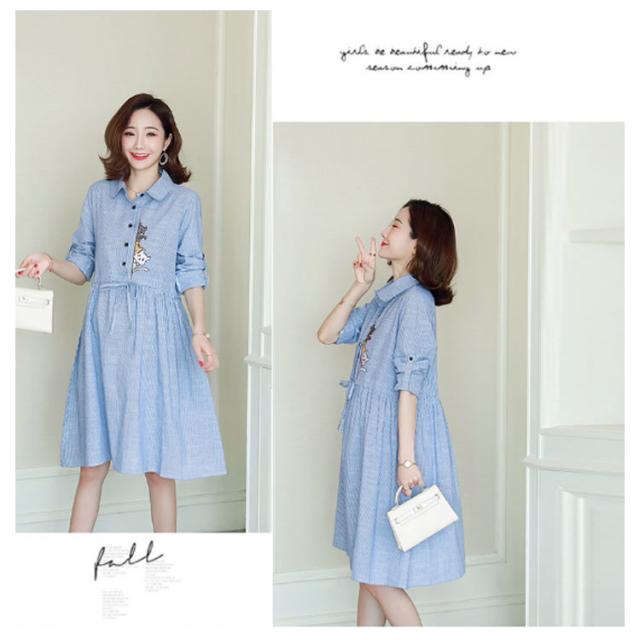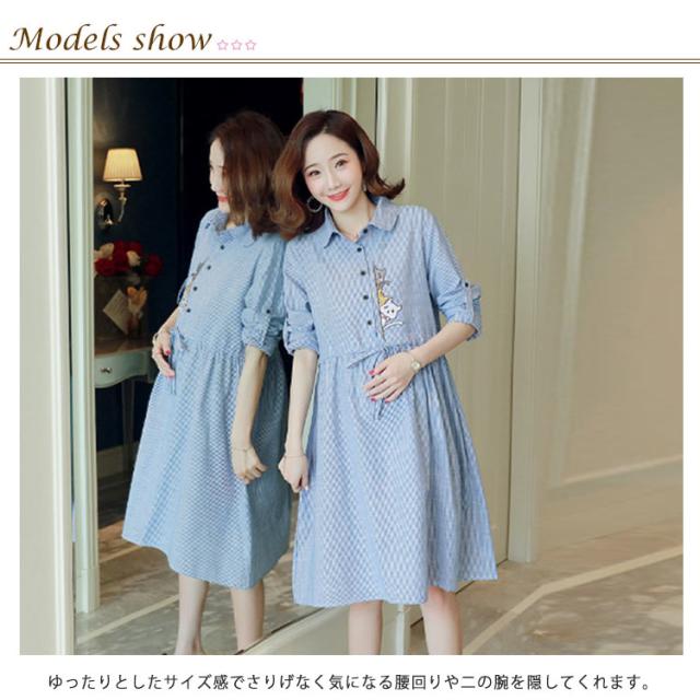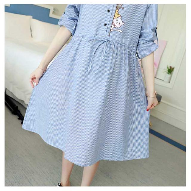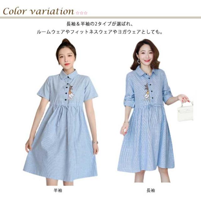 マタニティ ワンピース シャツワンピース 半袖 長袖 授乳服 授乳 産後 臨月 妊婦服 パジャマ ルームウエア ギャザーシャツ ボーダー柄 ワンピ ウェストリボン ウェストマーク ゆったり マタニティ 薄手 産前産後