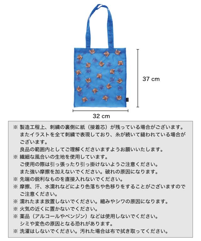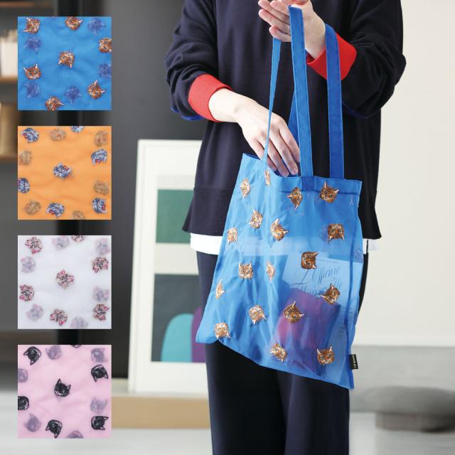 ナタリーレテ オーガンジートートバッグ|Nathalie Lete Organdy tote bag エコバッグ お買い物バッグ かわいい 可愛い おしゃれ 便利 動物 A4 透け感 シースルー 猫 ネコ ねこ 刺繍