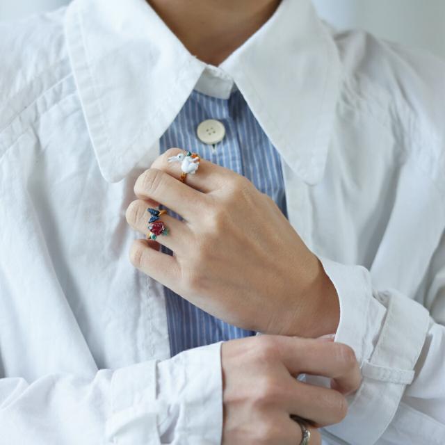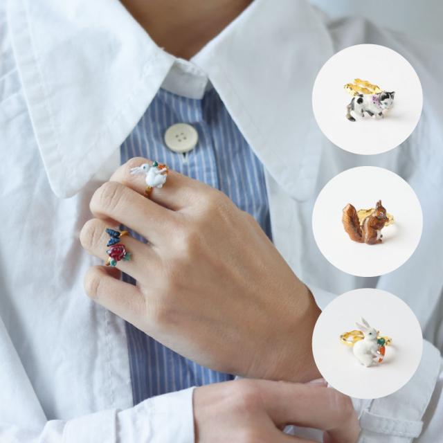 ナタリーレテ リング|指輪 アクセサリー ファッション おしゃれ 可愛い ネコ 猫 リス ウサギ 動物 アニマル カラフル ギフト 贈り物 ポーチ フリー フリーサイズ 調整可能