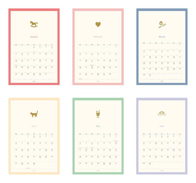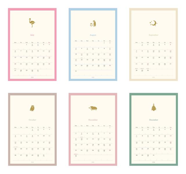 ひと月の色数を抑えてゴールドの箔を引き立てています。