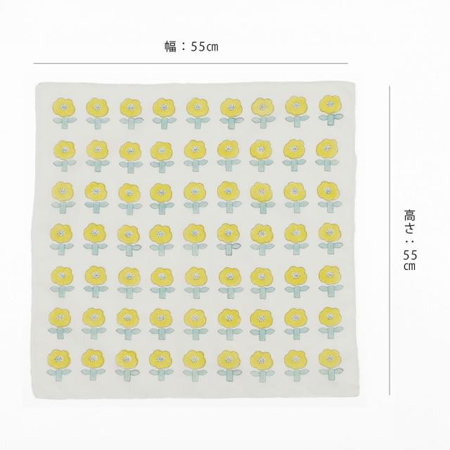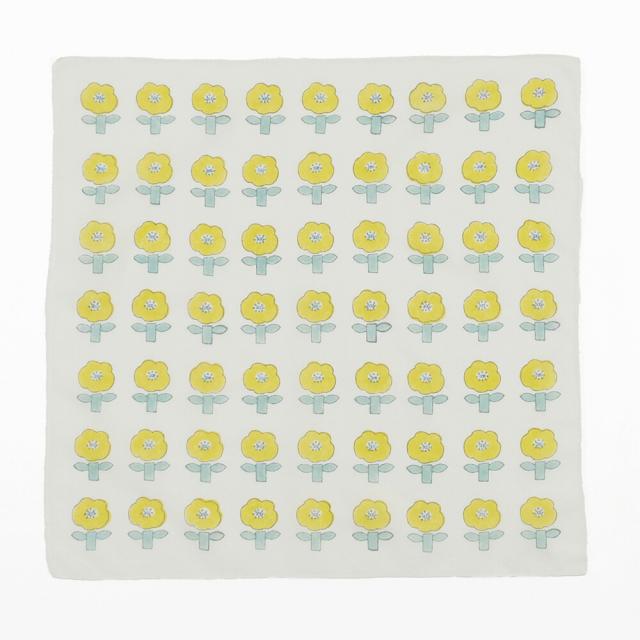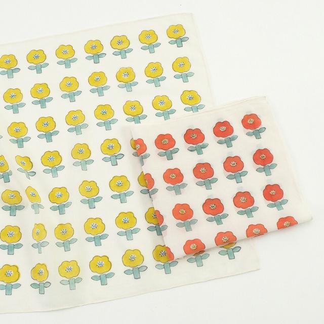 ブロックプリントのハンカチ(カメリア)|イエロー 北欧 コットン100% 大きめ ハンカチーフ タオル 柄 個性的 カラフル 大判 可愛い おしゃれ ボタニカル 植物 花 カメリア 大人 レトロ