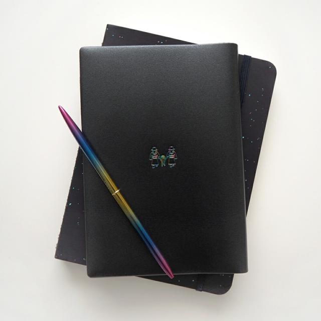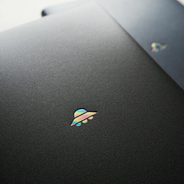 レインボー箔を押した ユニークな「UFO」モチーフ。