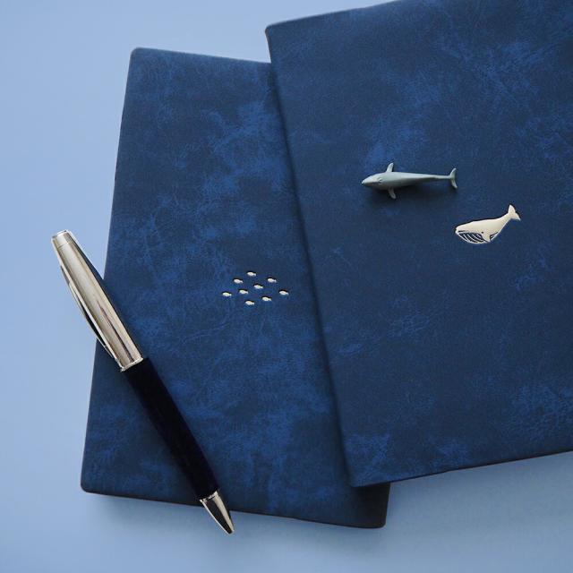 人気の「クジラ」柄の裏表紙は仲良く群をなす小魚たち。
