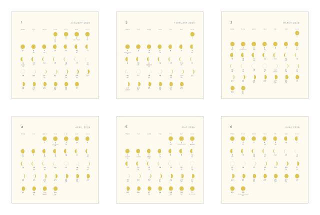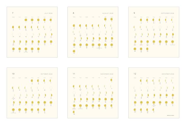 月の満ち欠けをモチーフにした シンプルで上品な印象のカレンダー。