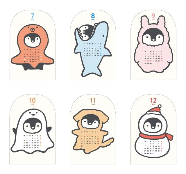 着ぐるみをかぶった太っちょペンギンの赤ちゃんシリーズがドーム型ダイカットカレンダーになりました。