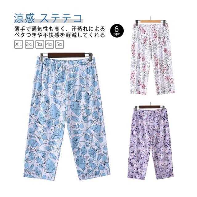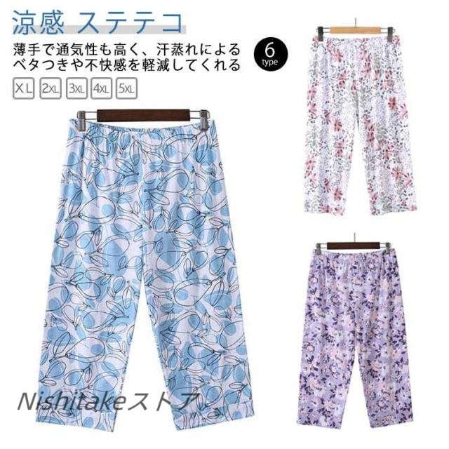 速乾 パジャマ ワイドパンツ ステテコ 蒸れない レディース メンズ 総柄 ステテコ 綿100 夏 ナイトウェア リラックスパンツ 伸縮性 薄手 7分丈 カラフル 涼しい 植物柄 すててこ 涼感 ハーフパンツ 部屋着 ルームウェア カジュアル