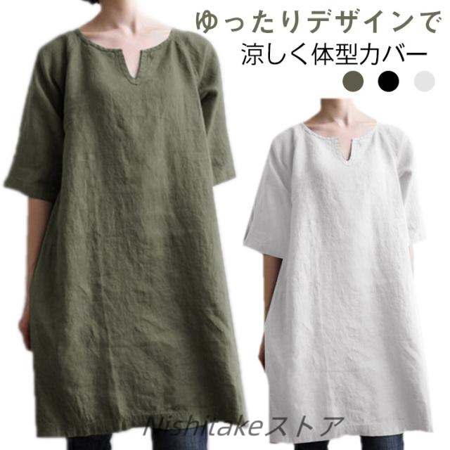 トップス レディース トップス ゆったり チュニック 夏服 チュニックシャツ 夏用 Vネック 無地シャツ チュニックシャツ 薄手 体型カバー 30代 40代 50代
