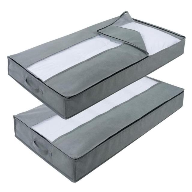 収納ケース ベッド下 2個セット 100*50*15cm 大容量 布団収納袋 敷布団用 掛け布団収納 圧縮 不織布 羽毛布団収納 通気性優れ 透明窓付き 衣類収納袋 防塵 防カ