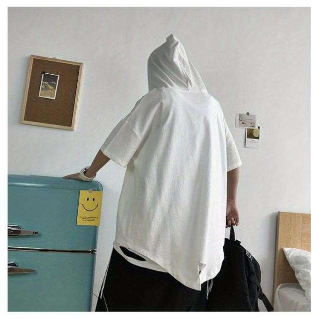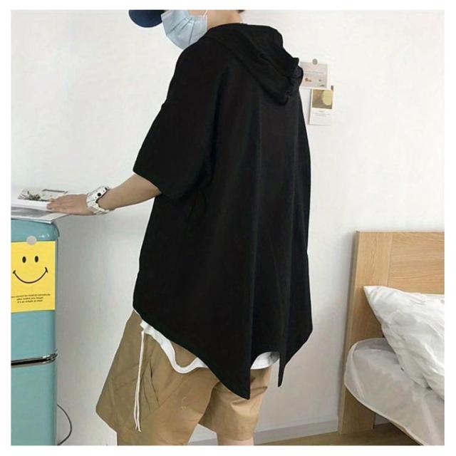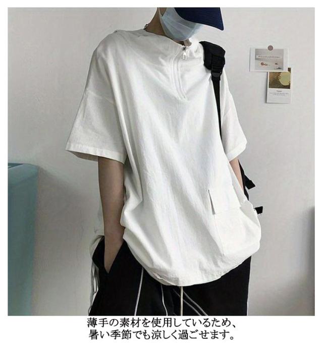 半袖パーカー 夏用 韓国 ビッグシルエット 5分袖 ボリューム 半袖パーカー 夏 メンズ パーカー ボリュームネック ハイネック 半袖tシャツ ジップ 夏 ゆったり ビッグシルエット ビッグパーカー メンズ 夏用 フード付き プルオーバー 薄手