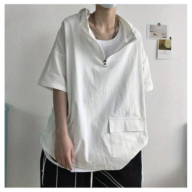 | 着こなしの幅が広いハーフジップタイプの半袖パーカーです。 シンプルな無地デザインとビッグシルエットが特徴で、どんなカジュアルな装いにもマッチ。 薄手の素材を使用しているため、暑い季節でも涼しく過ごせます。 フード付きでカジュアルになりすぎず、日差しから守ることもできます。 | |