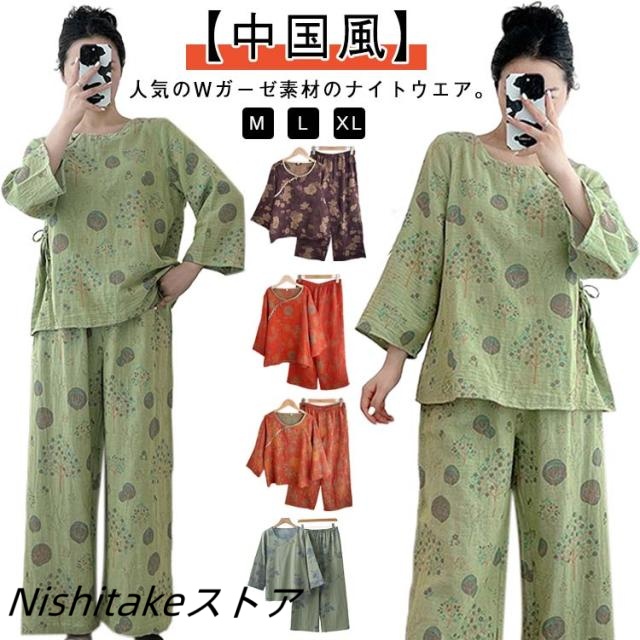 | 人気のWガーゼ素材のナイトウエア。【中国風】 ガーゼ素材ならではのやわらかく軽い着心地も魅力です。 春や秋冬など、気候の良い時期の着用をおすすめいたします。 ウエストは、やわらかいゴム仕様にしているので、締め付け感を軽減します。 こだわり設計でゆったり着られる快適パジャマ♪ 幅広い年齢層におすすめできる、贈り物にも喜ばれるナイトウェアです。 | |