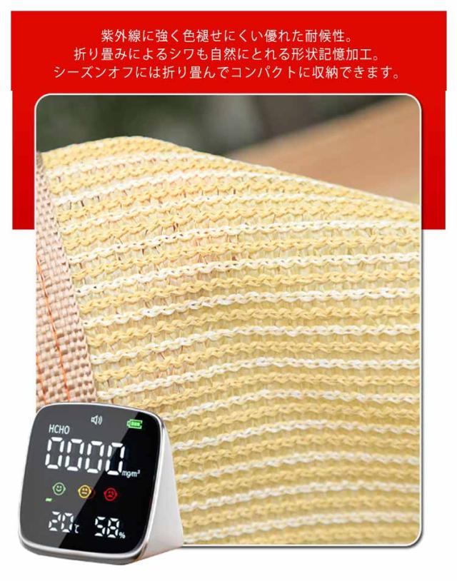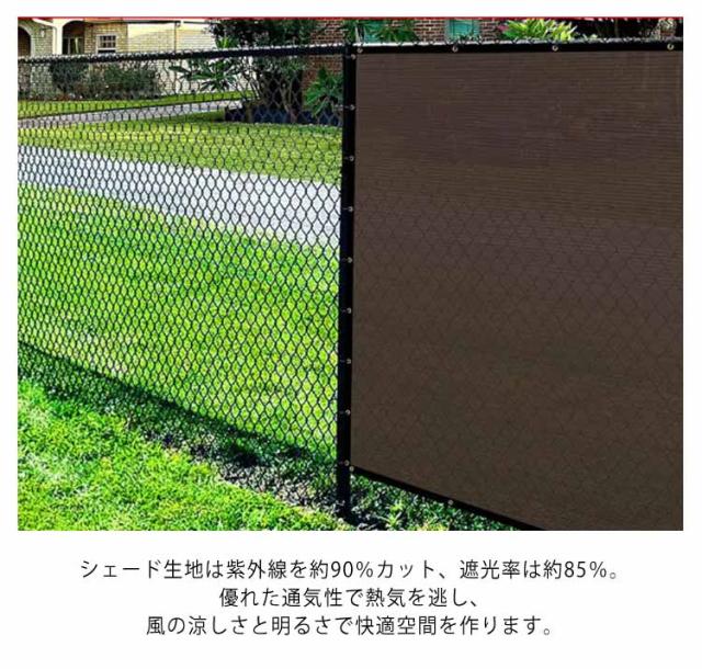 | 日よけや目隠しに便利な通気性が高いバルコニーシェードです。【長さ600cm、高さ90/100cm】 ベランダやフェンスのサイズにぴったりのバルコニーシェード。目かくしや日よけ、物の転落防止など用途は様々です。 シェード生地は紫外線を約90%カット、遮光率は約85%。優れた通気性で熱気を逃し、風の涼しさと明るさで快適空間を作ります。色あせや紫外線劣化にも強く、安心してお使いいただけます。 生地が汚れたら、ブラシなどを用いて水で洗って繰り返しお使いいただけます。長くお使いいただけるポイントです。 紫外線に強く色褪せにくい優れた耐候性。折り畳みによるシワも自然にとれる形状記憶加工。シーズンオフには折り畳んでコンパクトに収納できます。 | |