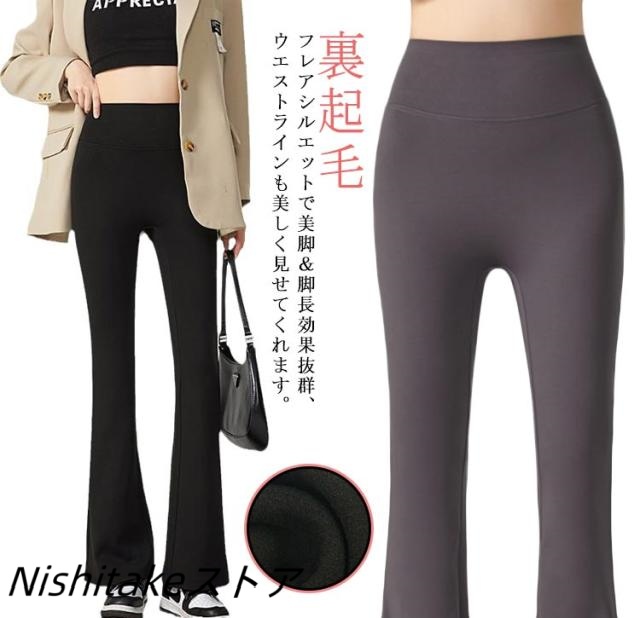 細身 ハイウエスト 無地 レディース フレアパンツ フィットネスウェア ボトムス 裏起毛 美脚 おしゃれ 保温 ヨガパンツ ベルボトム 伸縮 スポーツウェア パンツ ヨガ ダンス ピラティス ストレートパンツ ヨガウェア スリム ストレッチ お出かけ 暖かい