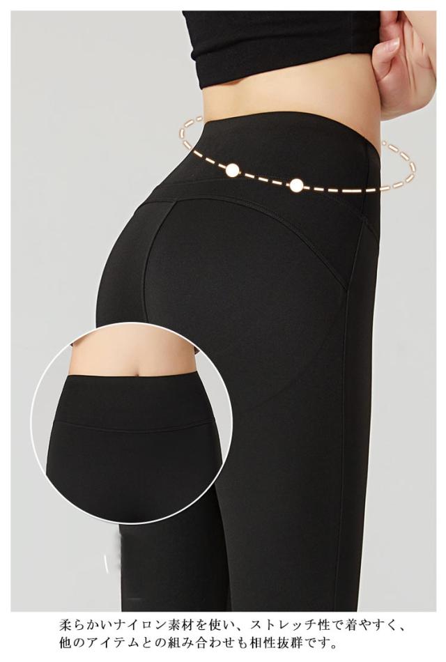 | シンプルにTシャツと合わせてカジュアルコーデを楽しんだり、スポーツ時にご着用したり様々なシーンで活躍間違いなし。 スポーツやダンスなどにデイリーに大活躍のヨガパンツ 。 フレアシルエットで美脚&脚長効果抜群、ウエストラインも美しく見せてくれます。 柔らかいナイロン素材を使い、ストレッチ性で着やすく、他のアイテムとの組み合わせも相性抜群です。 膝上で絞った細身ラインと膝下より広がるシルエットのデザインで、足元を華奢に見せます。 | |