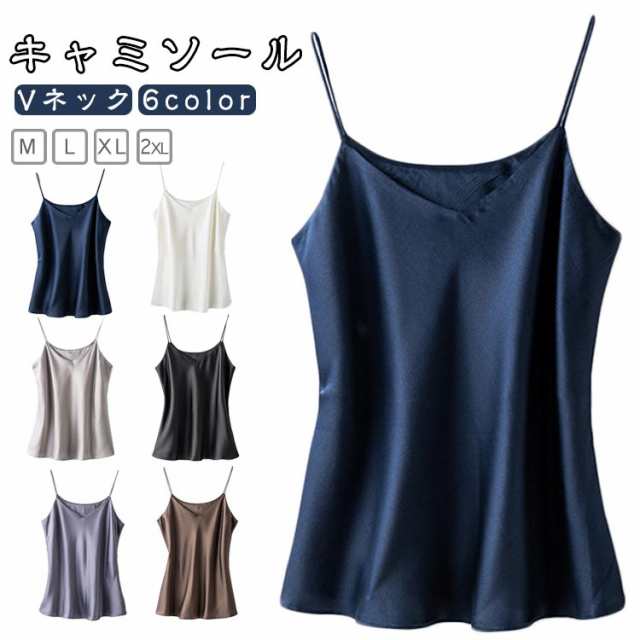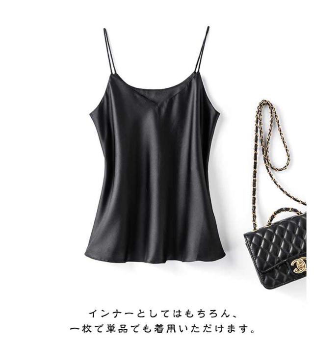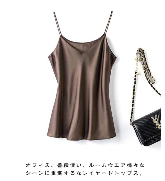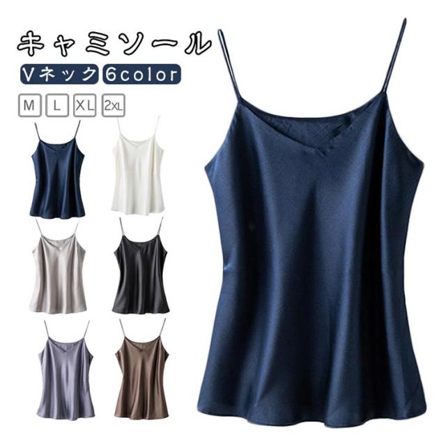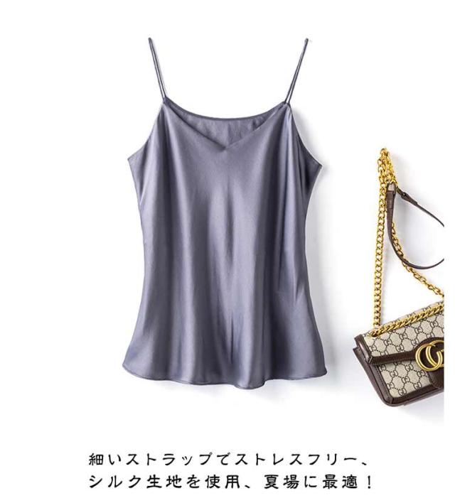 シルク Vネックキャミソール 通勤 シルクキャミソール カップなし 透けない フェミニン シルク インナー 重ね着 レイヤード トップス インナー オフィスカジュアル おしゃれ きれいめ 下着 M L XL