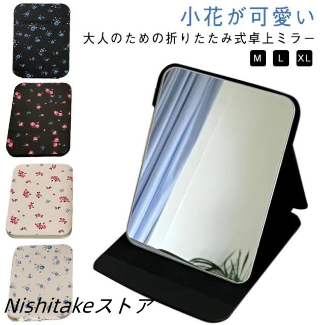卓上ミラー 可愛い 持ち運び可能 花柄 総柄 折りたたみ式 卓上ミラー 大きい鏡面 折りたたみミラー 角度調整自在 化粧鏡 角度調整自在 小花柄 卓上鏡 コンパクトミラー 持ち運び鏡 スタンドミラー ミラー 鏡 手鏡 かがみ