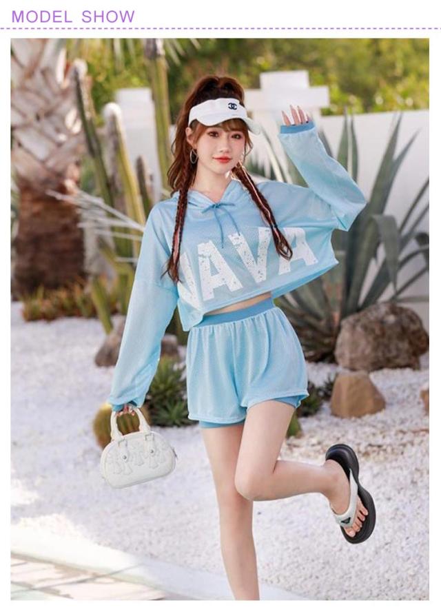 | デザインがかわいい、フード付きトップスで体型カバーもできて嬉しい! おしゃれなスポーティーデザイン。 パッド付き、バストをしっかりカバー! 気になるお腹や二の腕までを可愛く、しっかり体型カバー効果補正出来る一枚です。 露出は抑える嬉しいの3点セットです。 | |