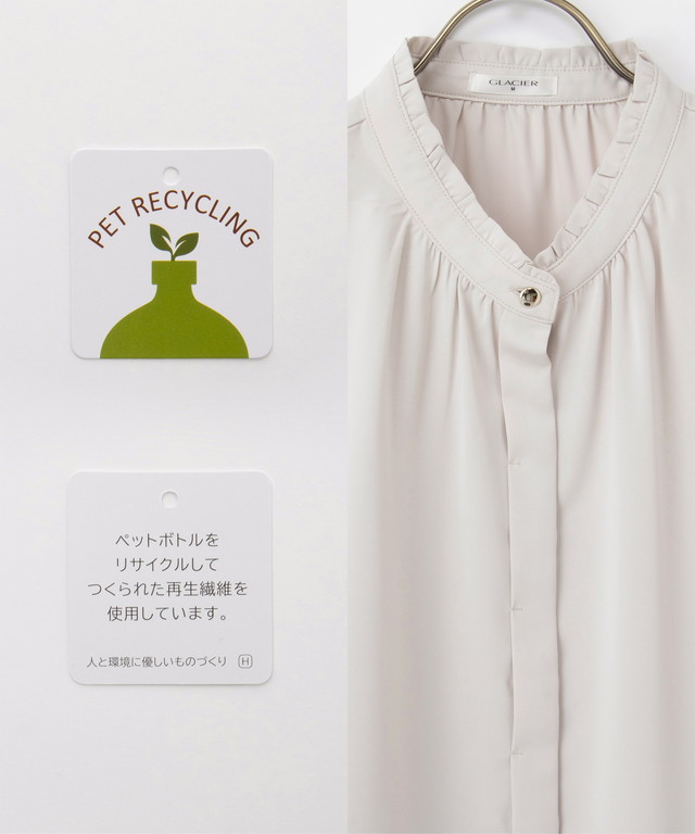 環境に優しい再生ポリエステルを使用した、滑らかで着心地抜群の落ち感素材。