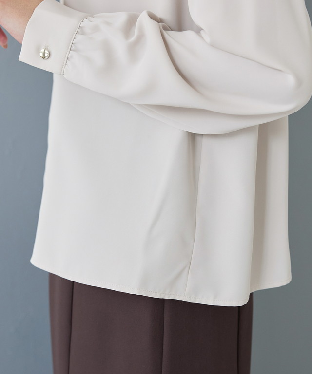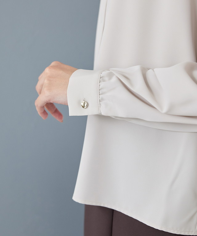 ボタンを隠した比翼仕立てで上品な印象に。