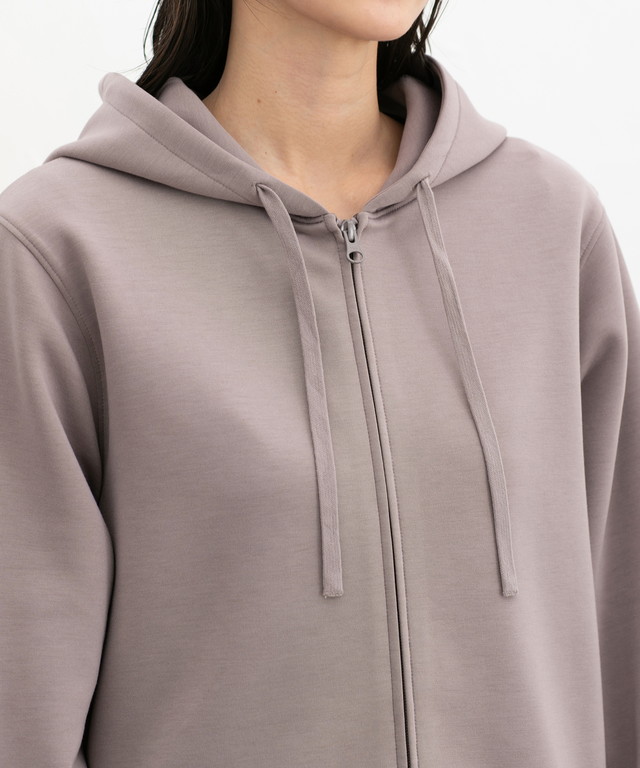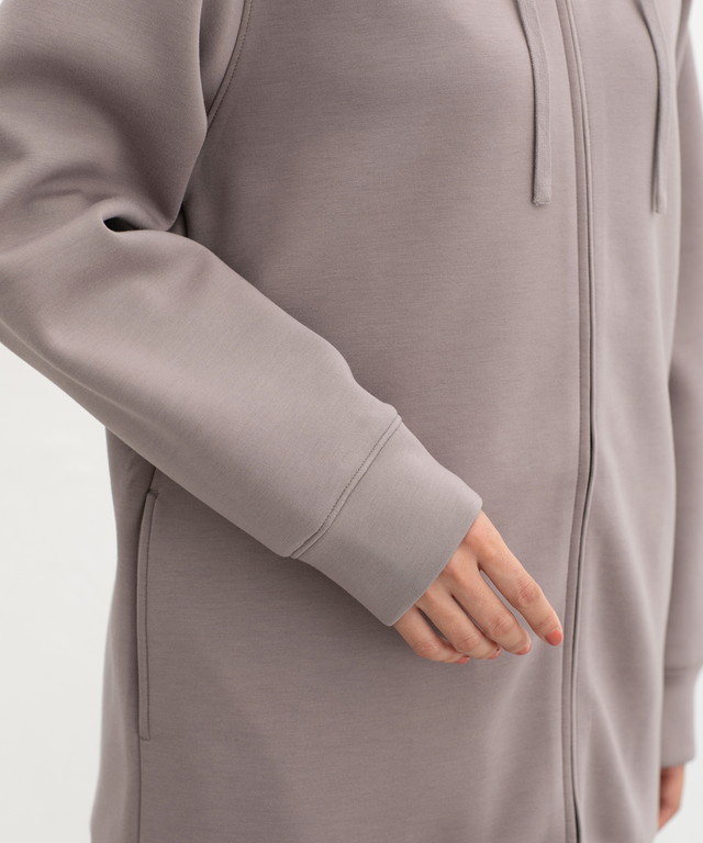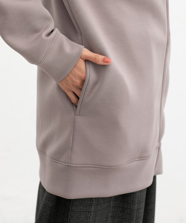 ストレッチの利いた、両面が滑らかなレーヨン混のきれいめスウェット素材。