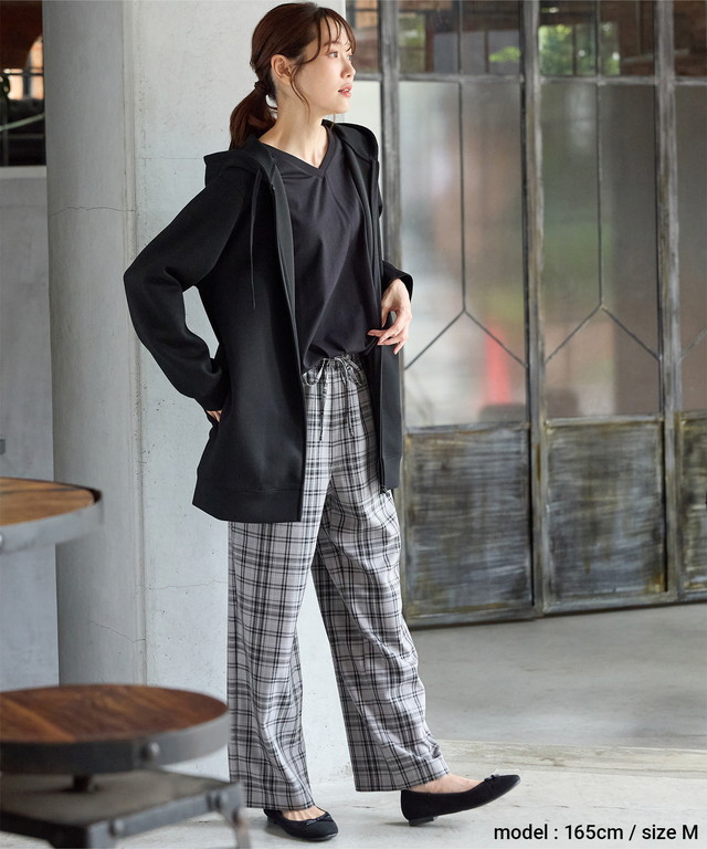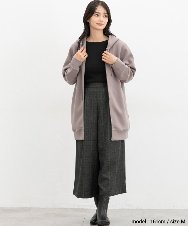 ゆったりめの幅とヒップまですっぽり隠れる丈感で体型もカバー。