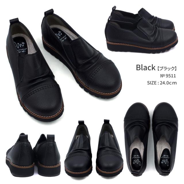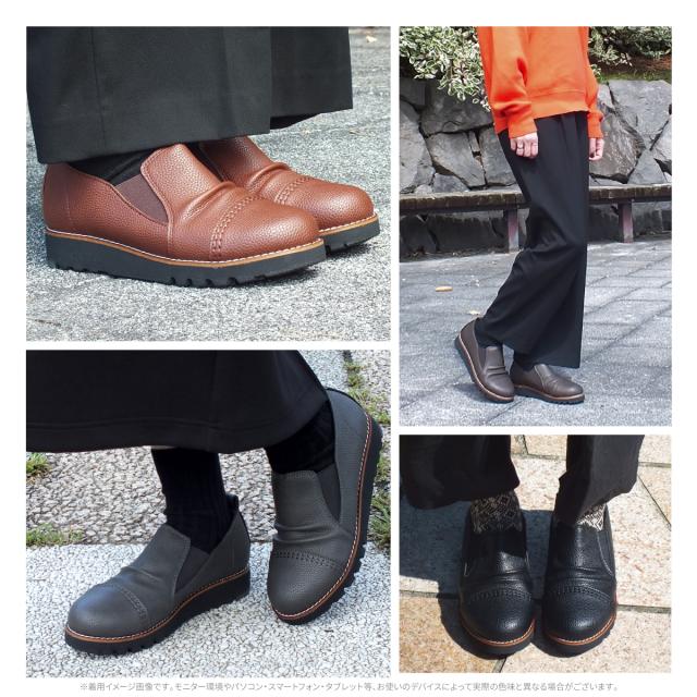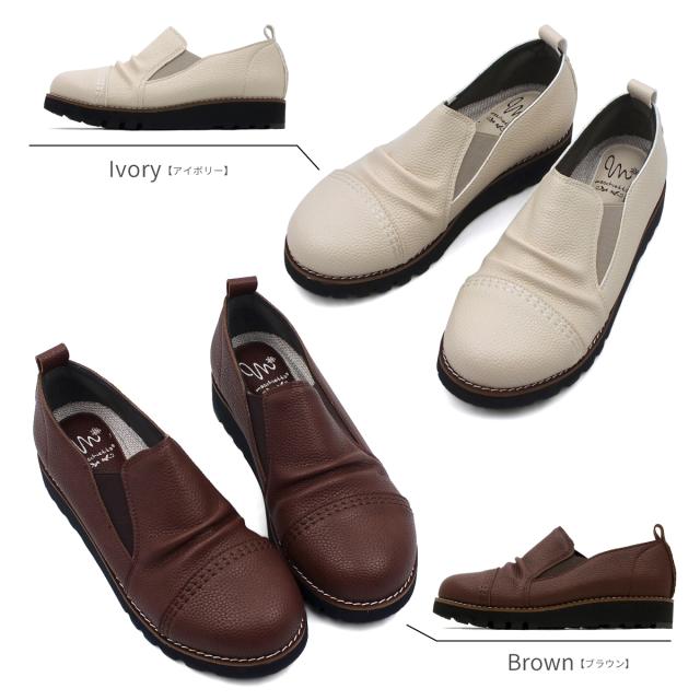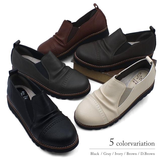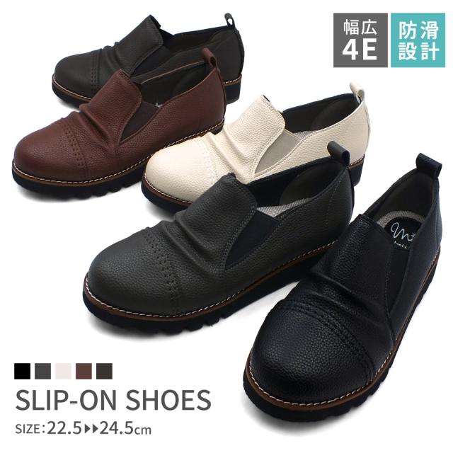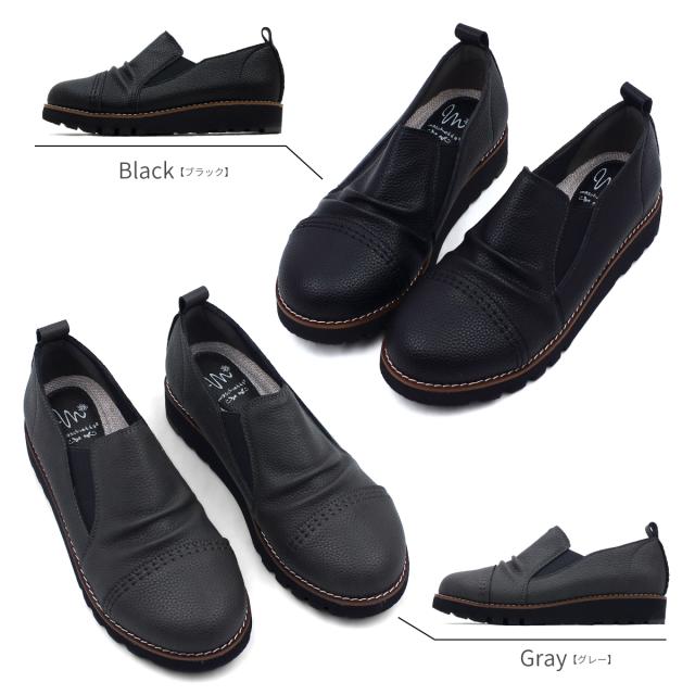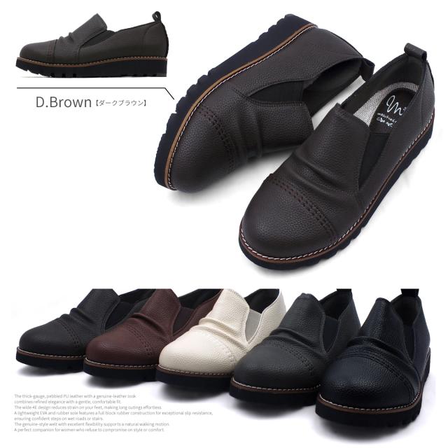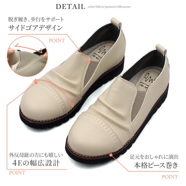 サイドゴア カジュアルシューズ レディース ギャザー ストレートチップ スリッポン オブリークトゥ 4E EEEE 幅広設計 本革調シボPU コンフォート 軽量 超防滑 クッションインソール 屈曲 本格ピース巻き 痛くない 歩きやすい プレゼント ギフト マスチェッタ 9511