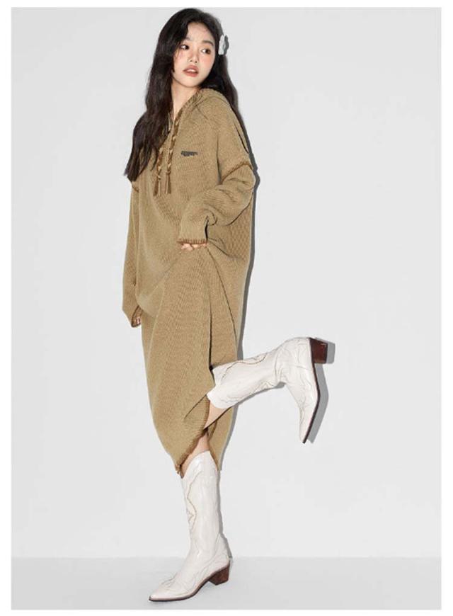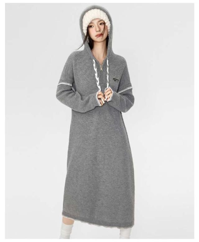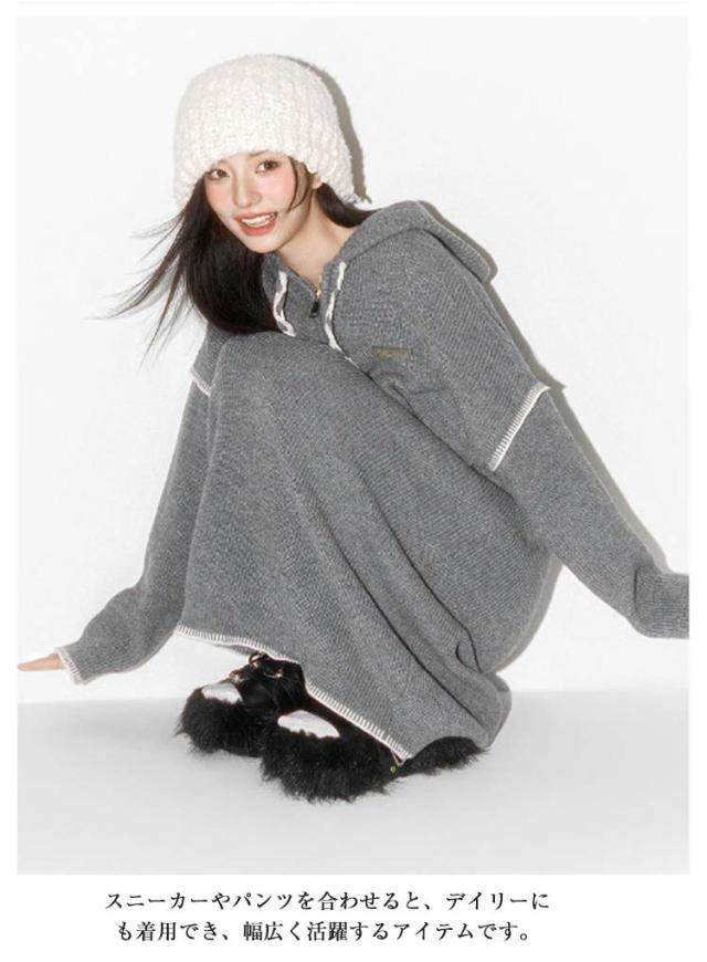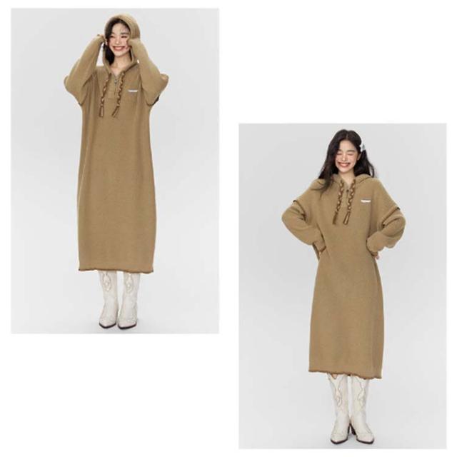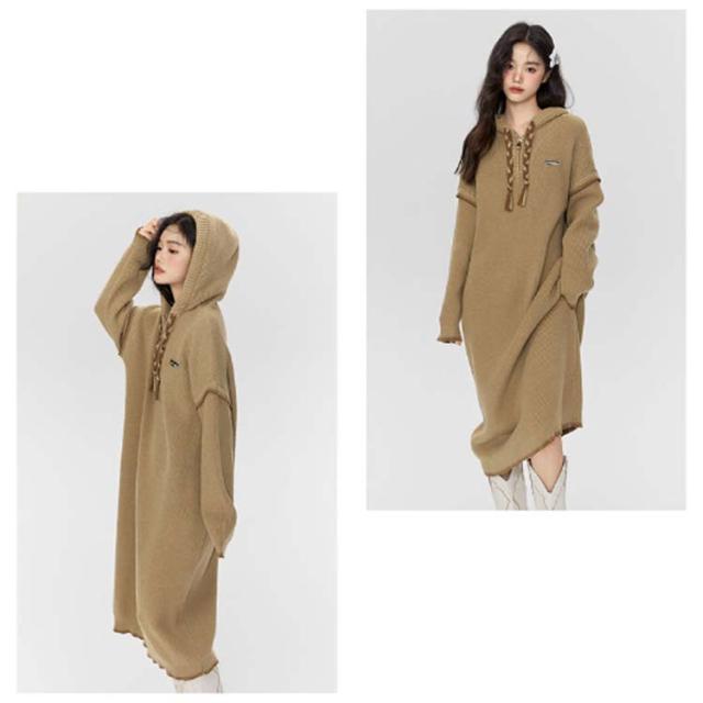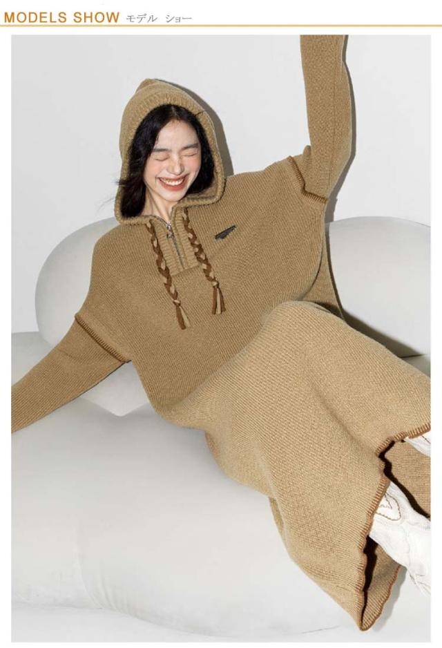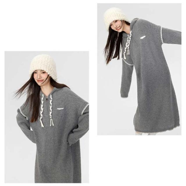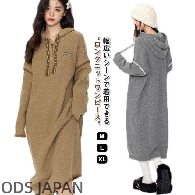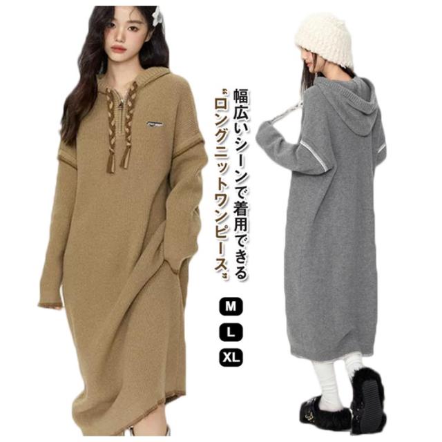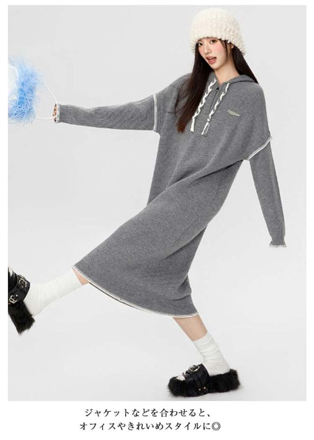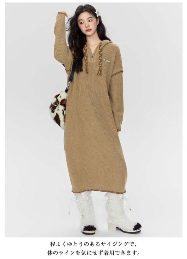 ワンピース ニットワンピース レディース ロングワンピース ニット ロングセーター ロング丈 マキシワンピ 長袖 フード付き ジッパー 体型カバー 暖かい 通勤 秋 冬 オフィス ゆったり きれいめ 秋 冬 おしゃれ カジュアル 韓国ファッション 通勤 通学 重ね着