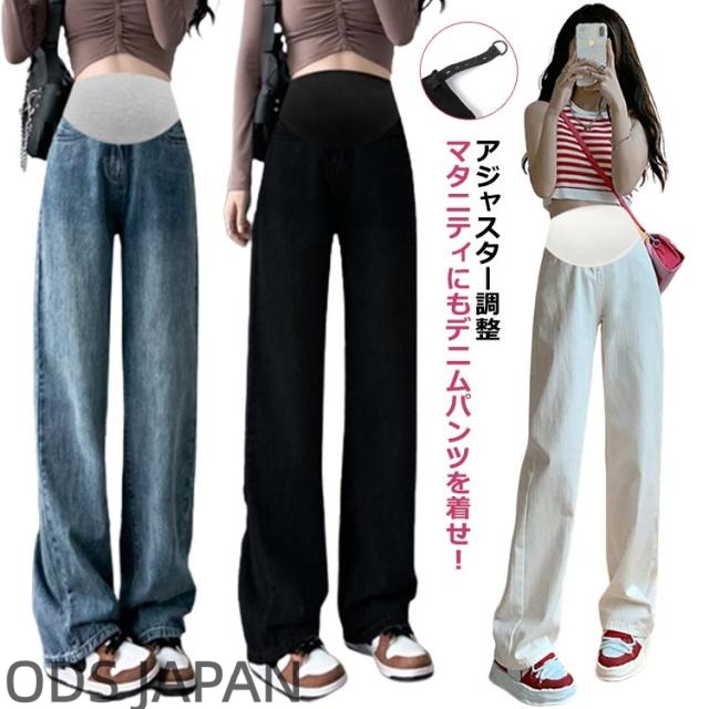 マタニティ デニムパンツ レギンス 春秋 春 秋 デニム デニム素材 10分丈 妊娠 妊婦 ワイドパンツ インナー デニム マタニティ対応 防寒 冷房対策 トレンド スリット 秋 冬 秋冬 ブラック アイボリー パンツ レギパン ブルー