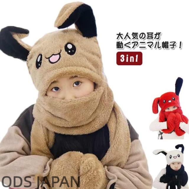 キッズ 帽子 ネックウォーマー 耳付き 手袋 もこもこ あったか 秋冬 大人 かぶりもの 被り物 ハロウィン 衣装 キャラクター 動物 アニマル 帽子 耳が動く アニマル帽子 ぬいぐるみ 着ぐるみ クリスマス パーティー 誕生日 プレゼント 贈り物 送料無料