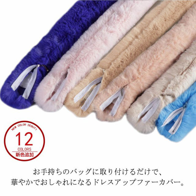 | 全12色!お手持ちのバッグに取り付けるだけで、華やかでおしゃれになるドレスアップファーカバー。 ふわふわの質の良いリアルミンクファーを使用しております。 定番のハンドバッグもファーをプラスするだけで一気にオシャレに! お好きなバッグと組み合わせて自分だけのオリジナルバッグをお楽しみいただけます。 | |