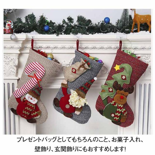 クリスマス 靴下 大きい オーナメント 1枚入 飾り サンタ ソックス お菓子入れ お菓子バッグ 玄関飾り 壁掛け 袋 バッグ 装飾 北欧 クリスマスソックス くつした クリスマスツリー飾りくつした クリスマスツリー 雑貨 壁飾り プレゼント おしゃれ 送料無料