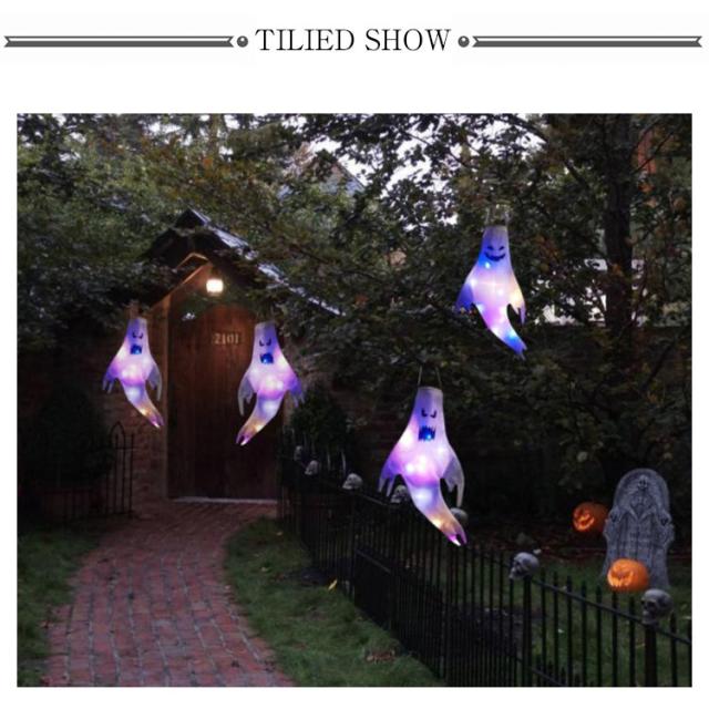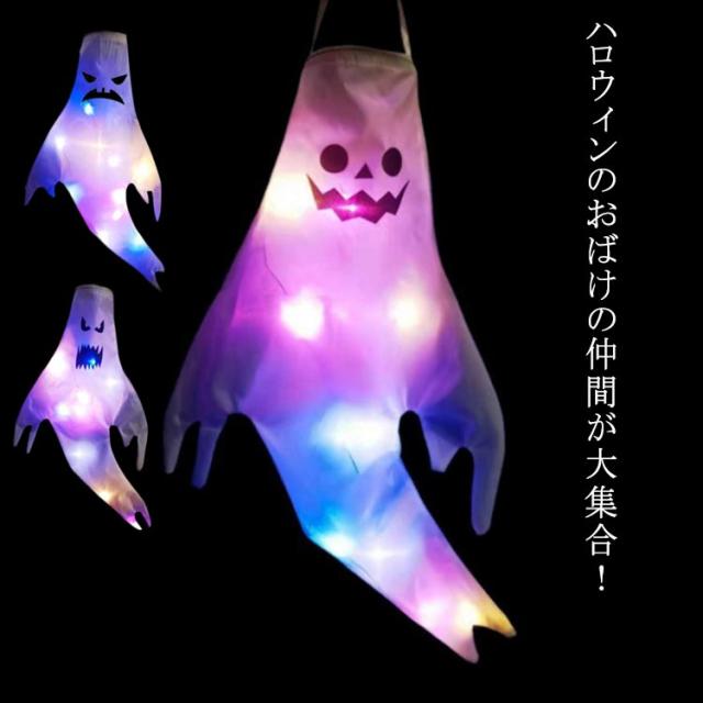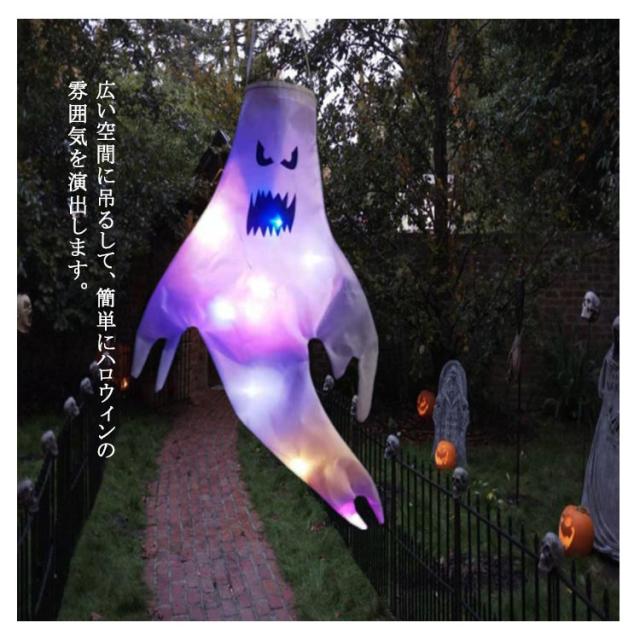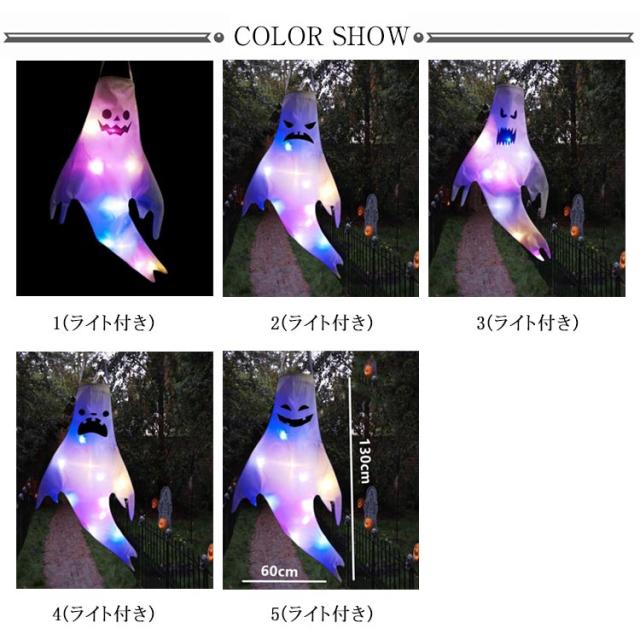 ハロウィン 幽霊 4個セット LEDライト付き 飾り 吊り下げ 130×60cm お化け 店舗装飾 パーティー 学園祭 室外 大きいサイズ