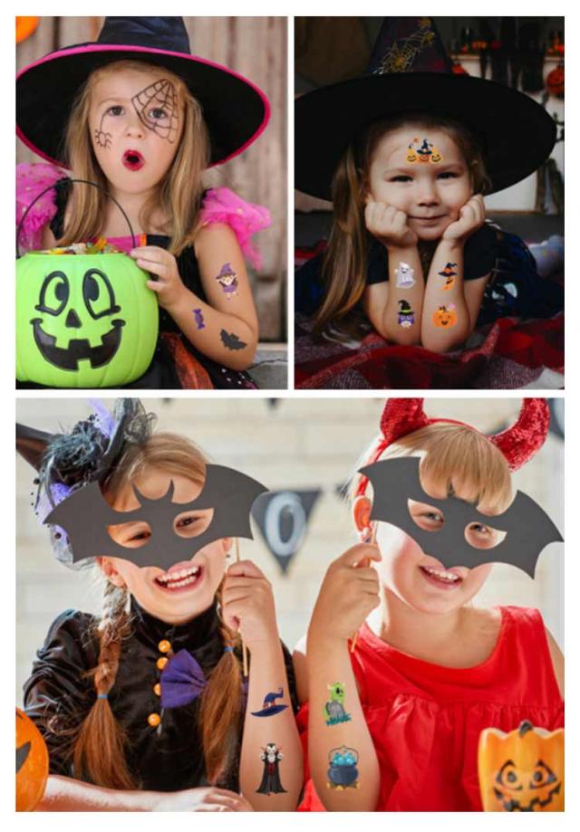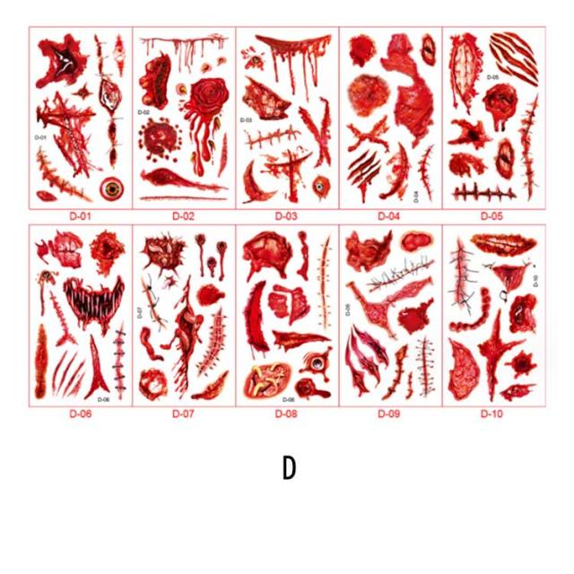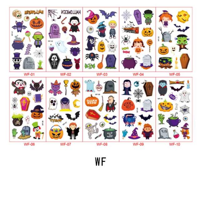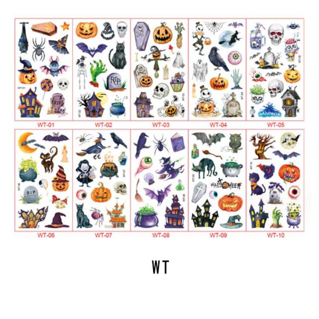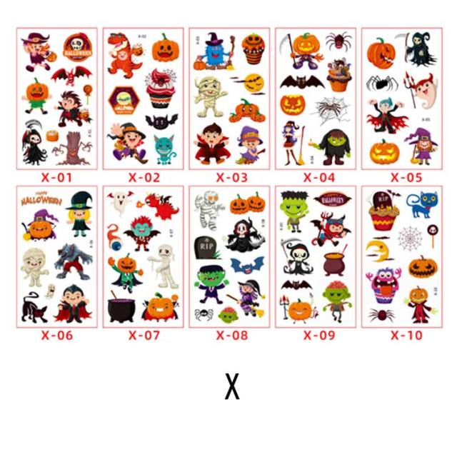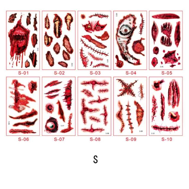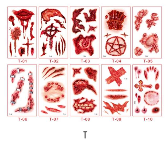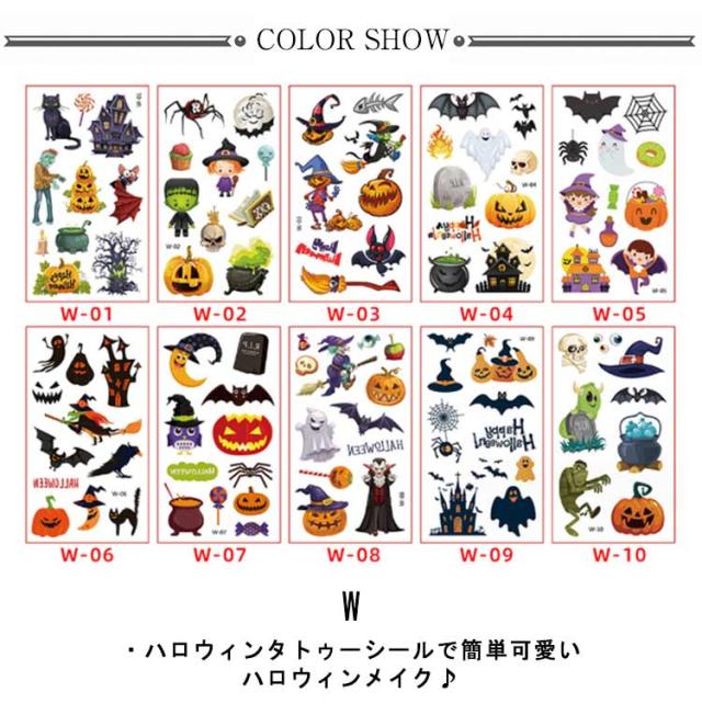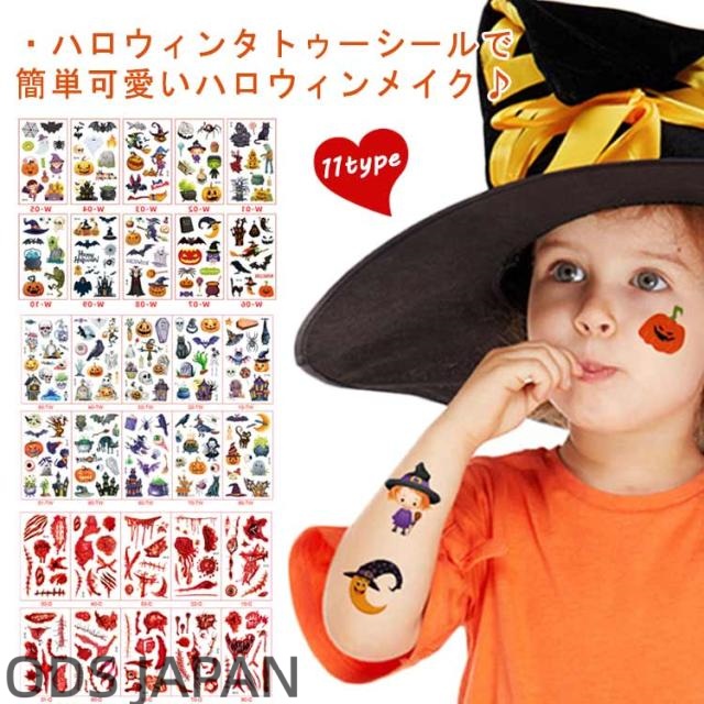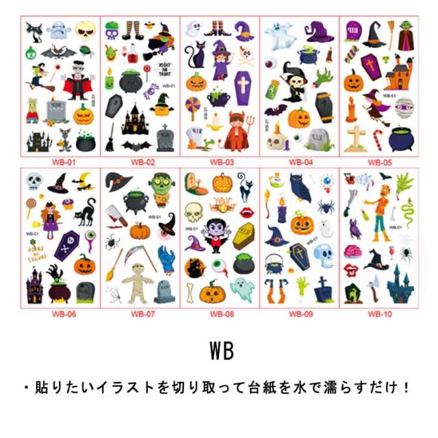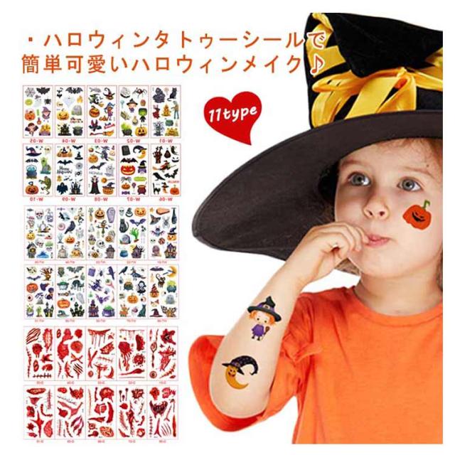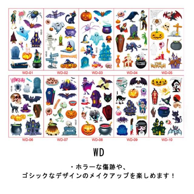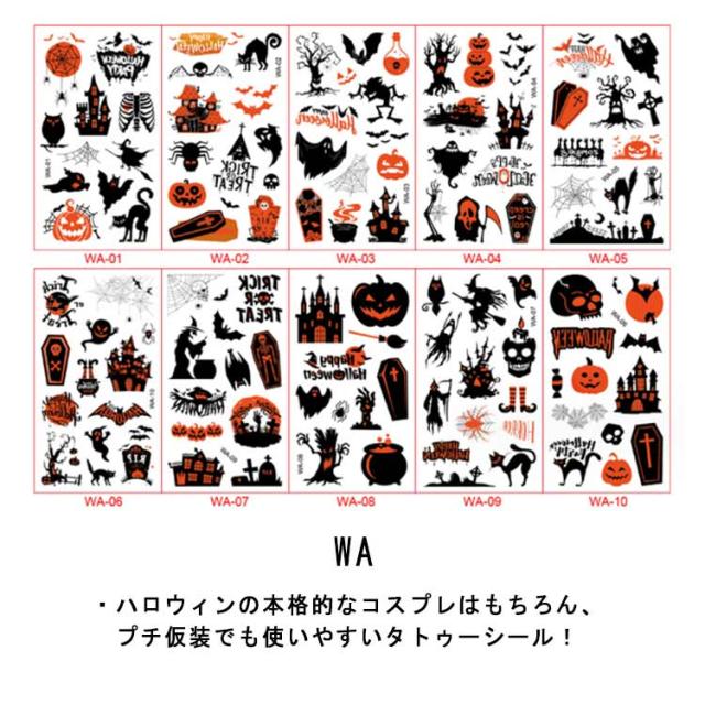ハロウィン タトゥーシール 10枚セット 防水 大人 キッズ こども リアル 傷タトゥー 入れ墨 刺青 コスプレ ゾンビメイク 仮装 イベント パーティー カボチャ インスタ映え 全11種類