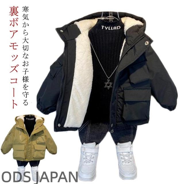 子供コート モッズコート キッズ 裏ボア コート ミリタリージャケット 子供 秋冬 男の子 女の子 中綿コート フード付き 防風 ボアジャケット ミディアム 防寒着