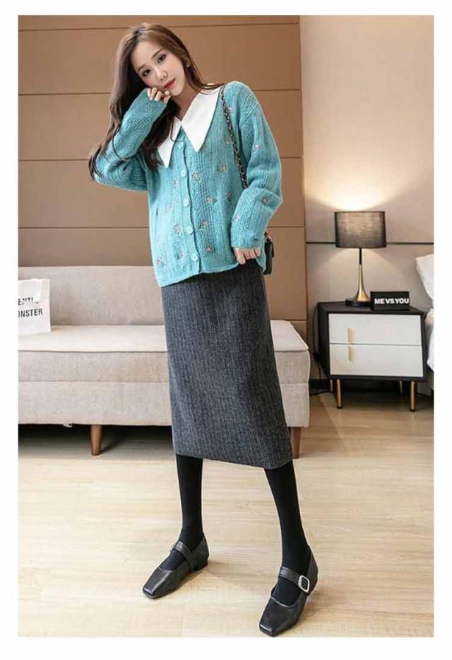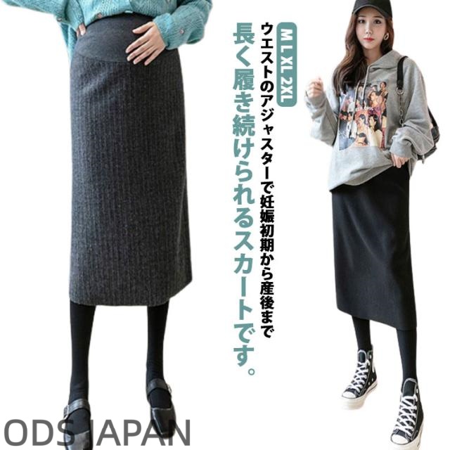 リブニットスカート レディース マタニティ スカート ニットスカート マタニティスカート 産前 産後 ミモレ丈 lライン スッキリ フィット 定番 おしゃれ 秋 冬 春 秋冬 ロングスカート ミモレ丈 オシャレ きれいめ