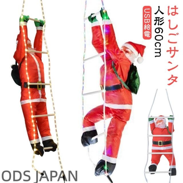 LED イルミネーションライト はしご サンタ 人形60cm サンタクロース 人形 サンタ サンタさん 立体 USB充電 USB給電 クリスマスライト クリスマス モチーフライト クリスマス 電飾 LED イルミネーション クリスマス オーナメント 壁飾り 庭 玄関 屋外 室内 送料無料