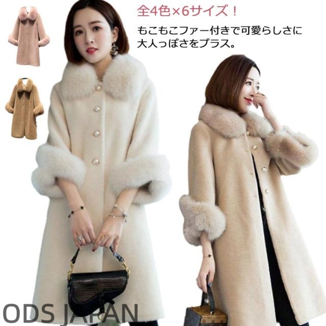 ボアコート ムートンコート レディース 冬 40代 ファーコート フェイクムートン ロングコート オーバーコート アウター 防寒 フェイクファー付き 40代 50代 30代 きれいめ アウター 秋冬