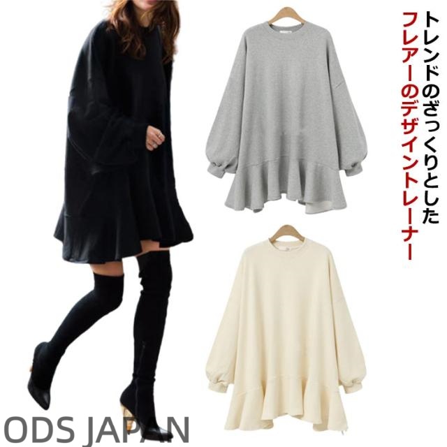 トレーナー レディース 裾フリル 長袖 トップス 大きめ オーバーサイズ カジュアル ゆったり 体型カバー トレンド オシャレ 大人 可愛い 韓国ファッション