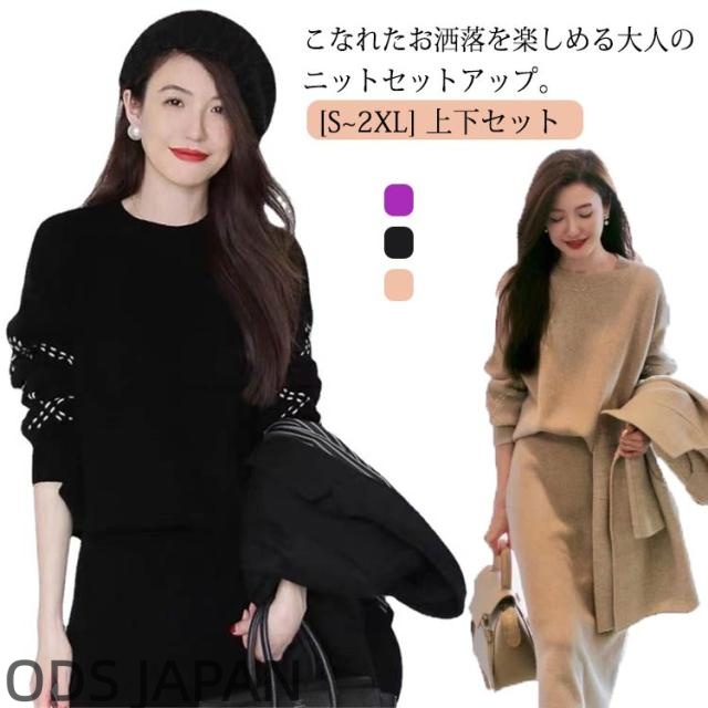 [S~2XL] 上下セット ニットセットアップ レディース セットアップ 秋冬 長袖 ニット カーディガン 重ね着 トップス スカート タイトスカート ロング 膝丈 ニットスカー 秋 冬 丸首 セーター プルオーバー 通勤 無地 ゆったり