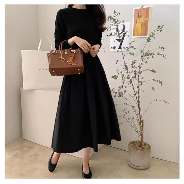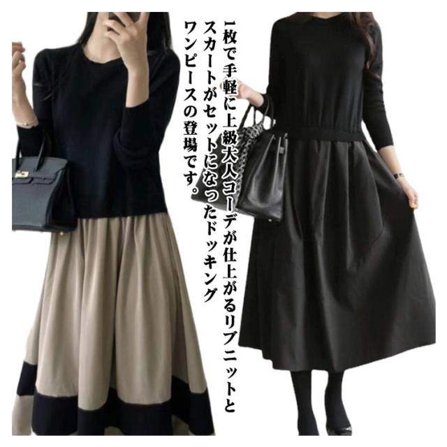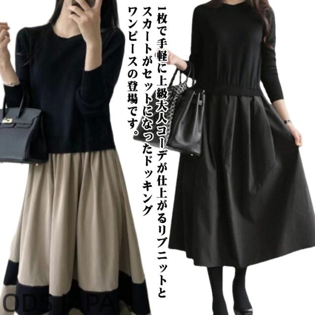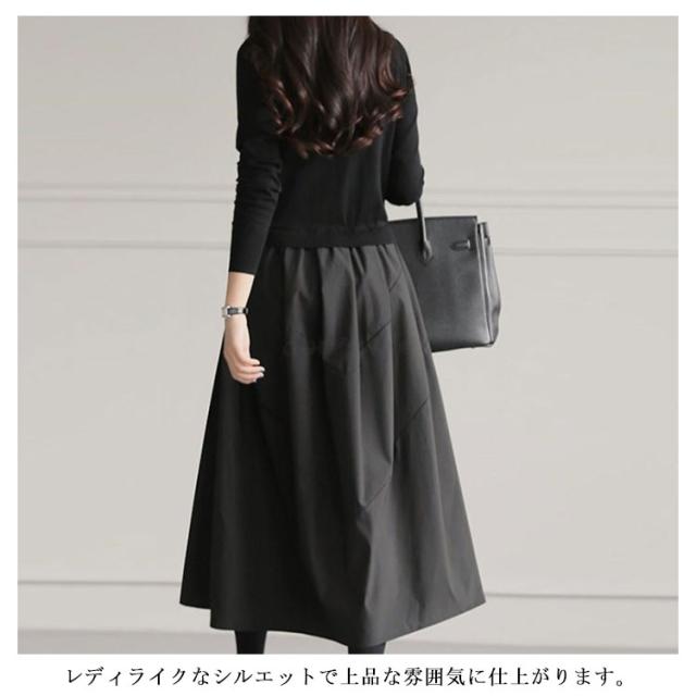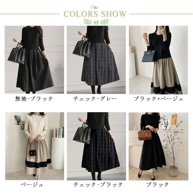 クルーネック 長袖 きれいめ ワンピース ワンピース レディース 切り替えワンピース お洒落 秋冬 シンプル 春 ロング チェック柄 通勤 オフィス フォーマル ゆったり フレア カジュアル ニット 20代 30代 40代 50代