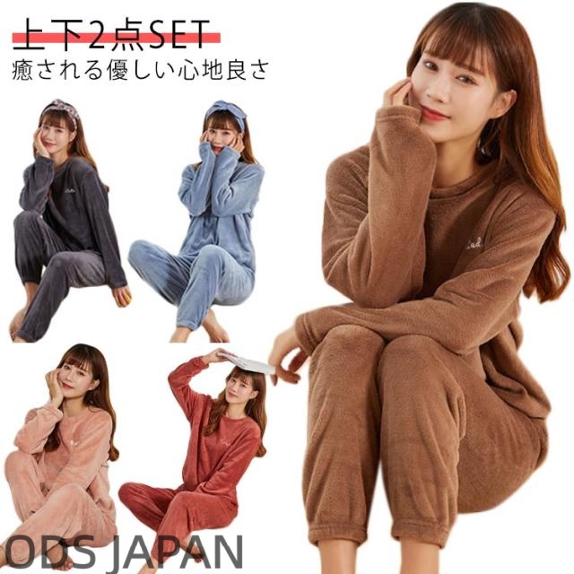 レディース パジャマ 上下セット 秋冬 モコモコ 長袖 起毛 ルームウェア 暖かい 寝巻き 無地 パジャマ 防寒 かわいい 厚手パジャマ